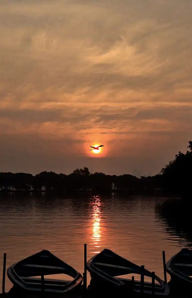 自湖面而来的风吹动头发与衣角,吹散了最后残存的燥热,取代之以千顷碧水的凉意。