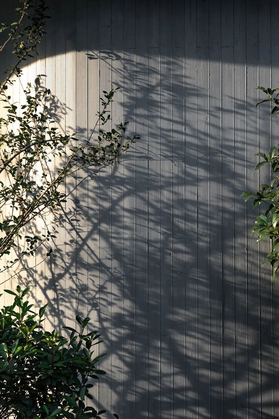 校园整体的素雅的浅灰色基调中,通过建筑形体的退叠、穿插、架空来搭建光影,浅灰色的穿孔板,铝板和木纹肌理的清水混凝土的运用则将不同的光影效果传递到室内。同样的色彩基调,不同表面肌理与质感,形成非常饱满的视觉体验。