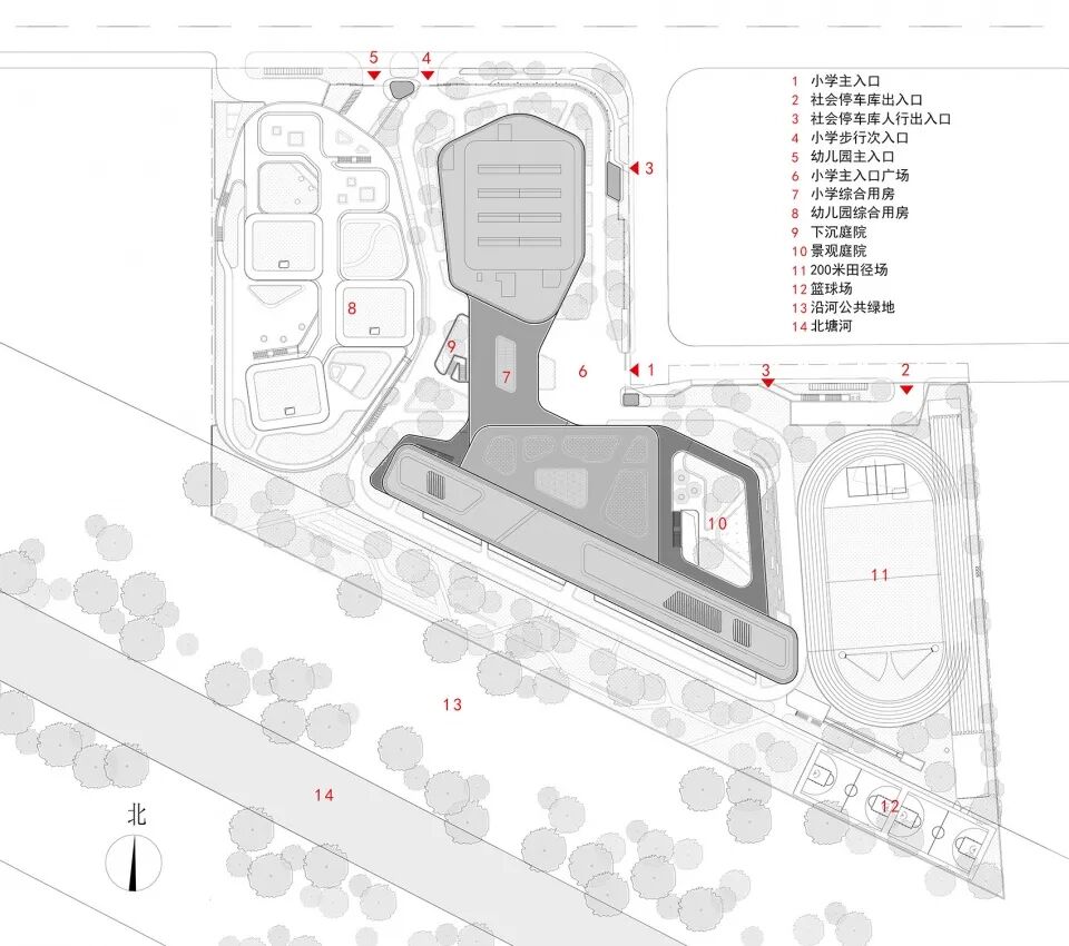 为了缓解高密住宅与繁华商业带来的负面情绪,我们将运动场、体育馆及餐厅置于用地外侧,阻隔来自外界的干扰,同时便于周边社区共享。