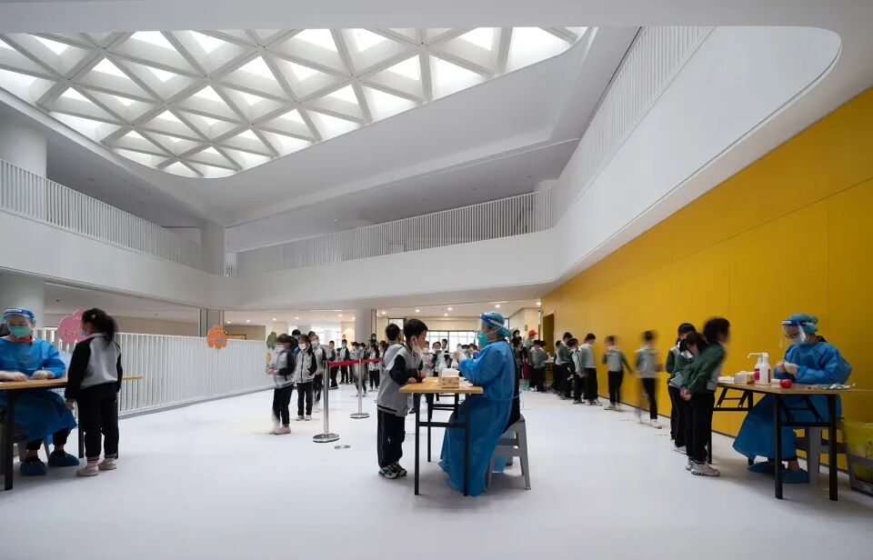 校级共享空间又环绕着教学综合体中庭设置,便于学校根据不同的教学计划打造成沉浸式的主题博物馆,集教育主题展览、体验式互动、项目式学习、开放式教学空间多功能于一体,形成我们所期待的立体的创造性学习社区。
