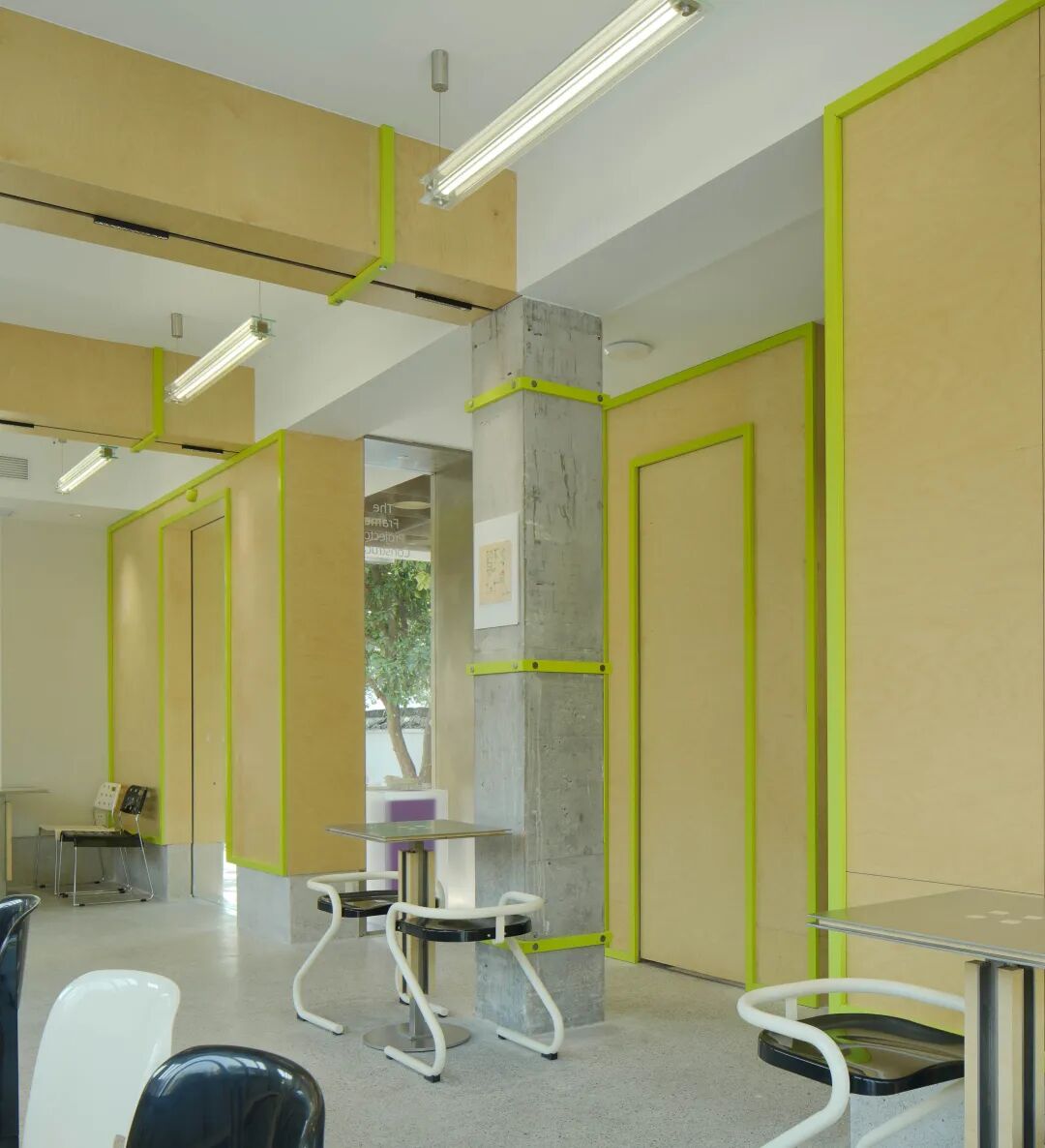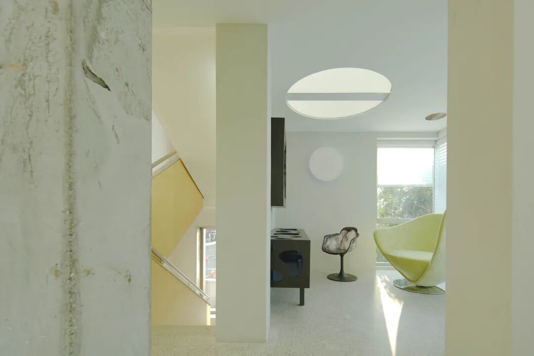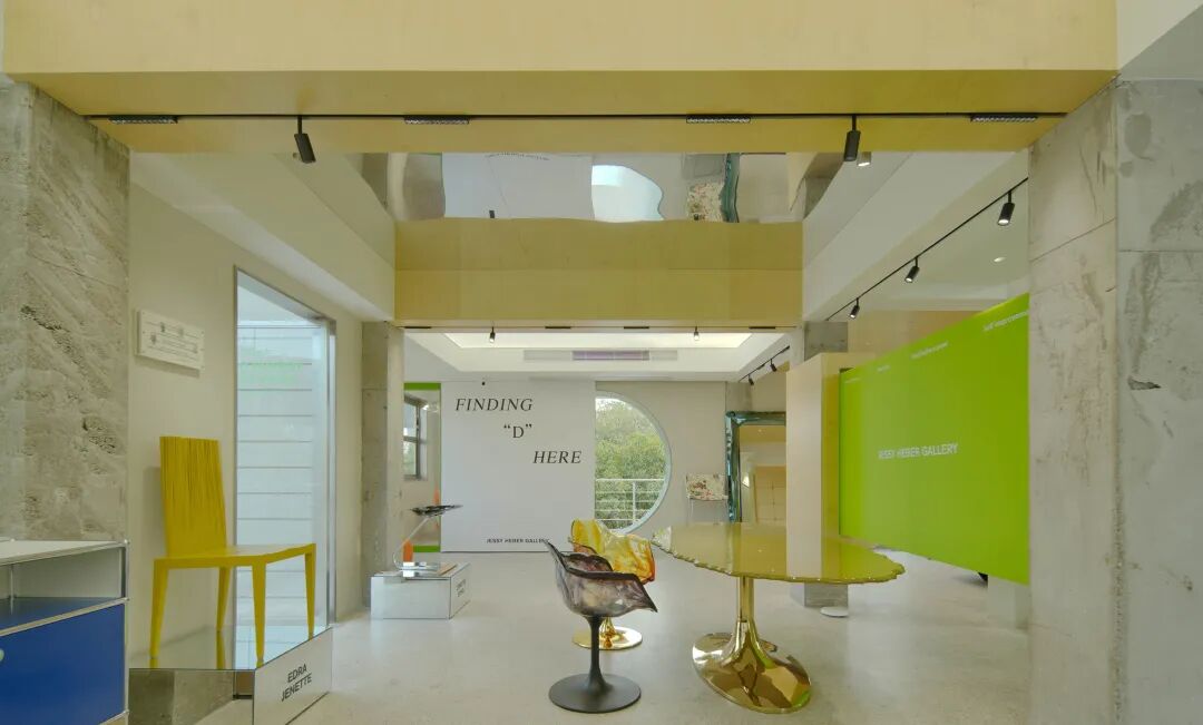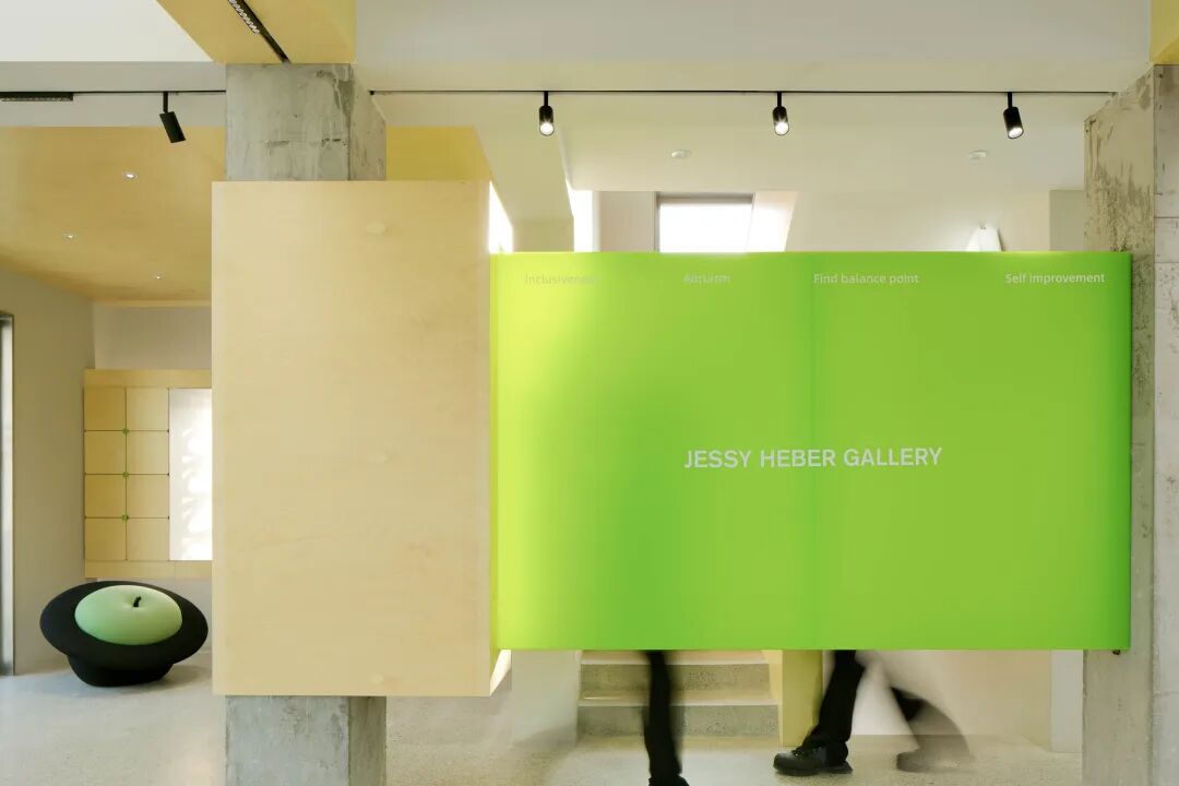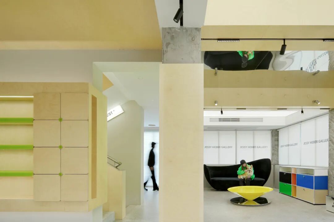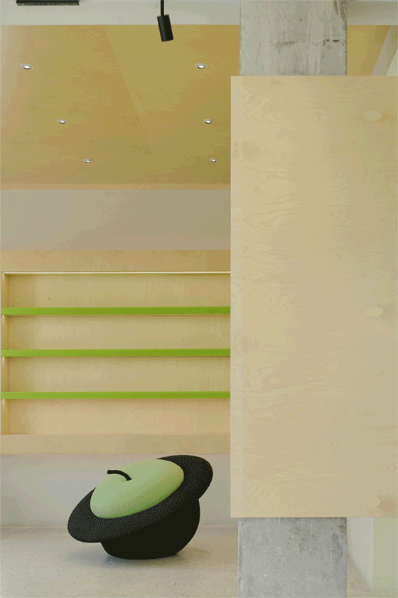 从公共性的一楼上至预约制的商拍,涵盖国际大牌的正品家具售卖,亦以契合商拍审美的标准精心陈列布置。在大面积铺设的温暖木质肌底上,跳跃着清新感的荧光绿,洽谈区域的一扇圆形窗更覆以可移动的白板,塑造别有洞天的观感,探索“人与自然”关系的另类诠释。