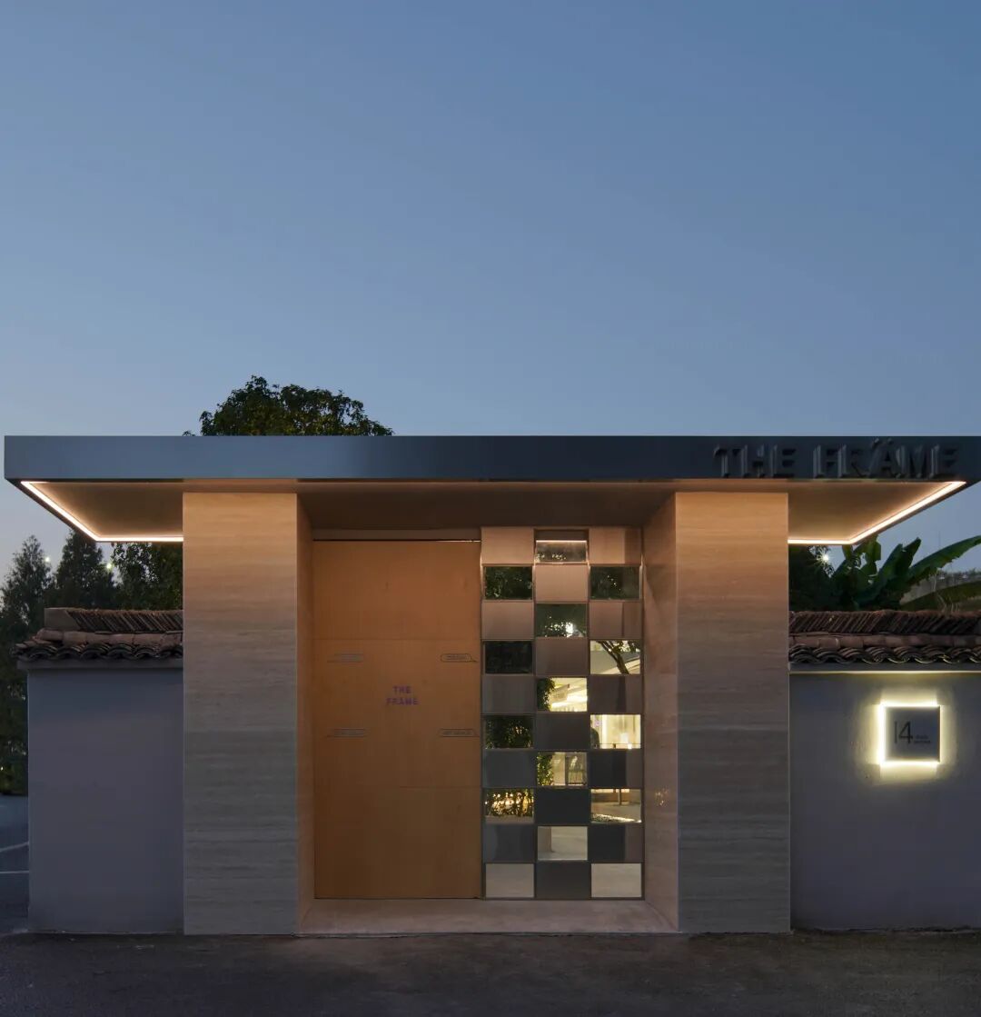 回应古镇自带的建筑遗存和人文积淀,同时遵循“生活化叙事”为核心的场所精神,设计师将传统建筑的琉璃构件创造性地沿用至入户大门的新中式窗花,与方形的不锈钢顶棚相呼应。建筑体量亦贯通框架单元的几何美学,穿插运用艺术涂料、海洋板及金属材质叠加肌理层次。