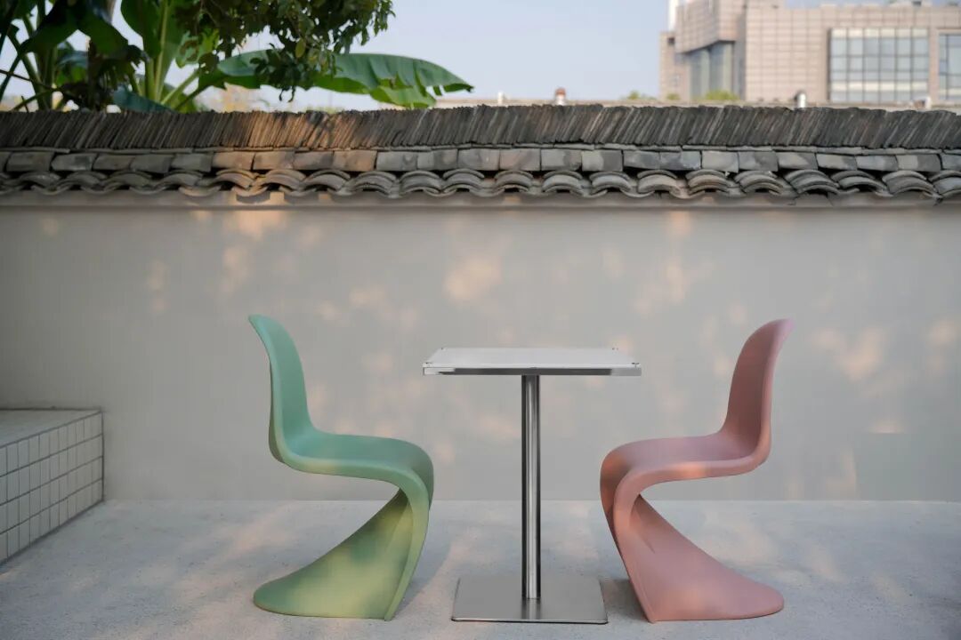 设计团队包揽了咖啡空间的所有家具定制、庭院小品乃至平面包装,品牌名之中Ӓ的元素代表优质咖啡豆等级AA。自然与艺术共同叠造“看与被看”的随机舞台,人成为风景的一部分,以在地的体验和即兴的互动传递独属于新一代城市青年群体的美好生活场和精神栖息地。