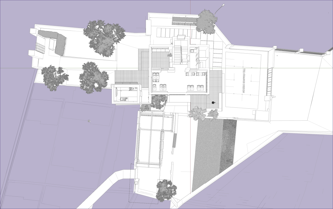 根据一层至三层各不相同的功能属性与私密度要求,空间业态依次定位于咖啡社交场所THE FRAME COFFEE,兼顾家具买手店与商拍陈设的JESSY HEBER GALLERY,以及设计工作室TRI-ORANGE DESIGN,逐层递进紫、绿、橙的不同品牌色进行差异化主题的场景营造。