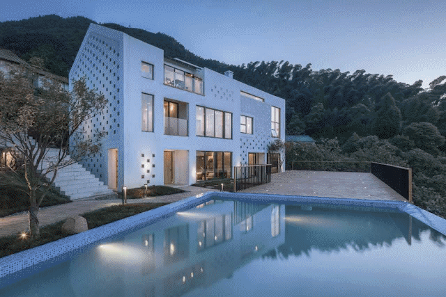 柒竹·青龙坞位于桐庐富春江镇芦茨村的蟹坑口,这里原先是餐饮界大佬吴国平招待客人的私人会所,不对外开放。后由柒竹的品牌创始人接手,才正式对外运营。建筑本身虽然是乡土的,但房间内部却是时髦的。夯土自带的安静的卡其色,奇妙的生活轨迹,推门而入的瞬间,那种温软的居住体验尤为强烈。从外观上看,它不奢侈,不华丽,可充满在地风情的黄泥墙和青瓦,却把野趣展露无遗,有了更接近原始的粗犷的美。