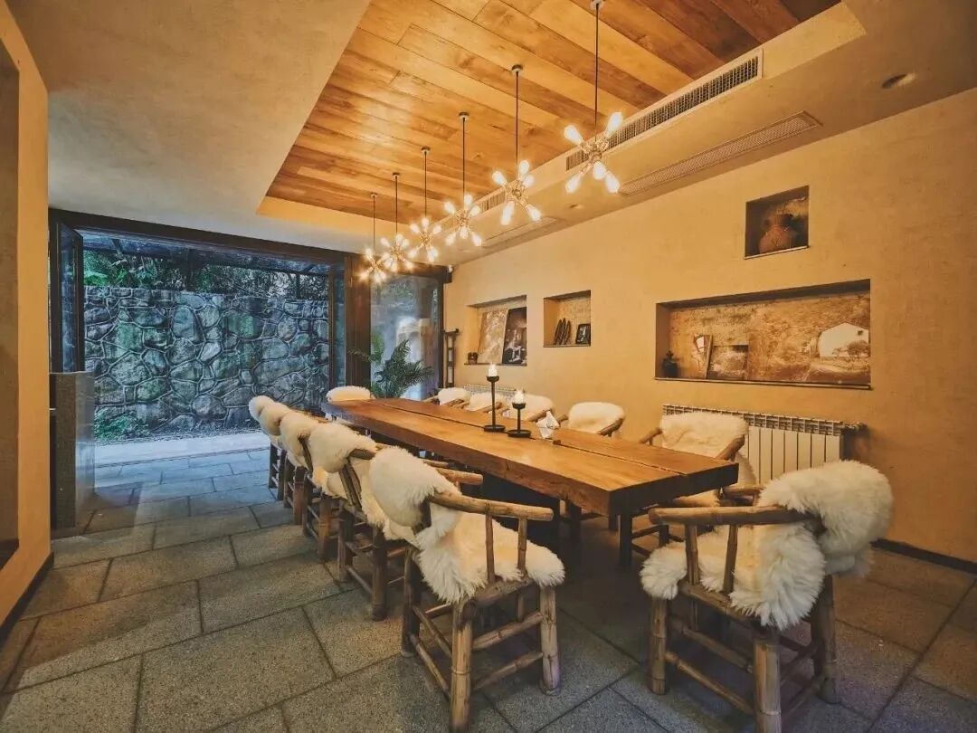 置身于民宿中,山就在眼前。V字型的山谷,垂直落差500米,一眼望去,只有翻滚的云海。不知不觉间,心胸变的宽广平和。过云山居客房在二楼,共有8间,8间面朝山谷的山景房,海拔650米的忘心茶轩,300平米山顶露台,1年中大半年时间里,过云谷准时迎接如海潮般升腾的云海,漫过屋舍,直抵心田。江南之南,收获最后的世外桃源。