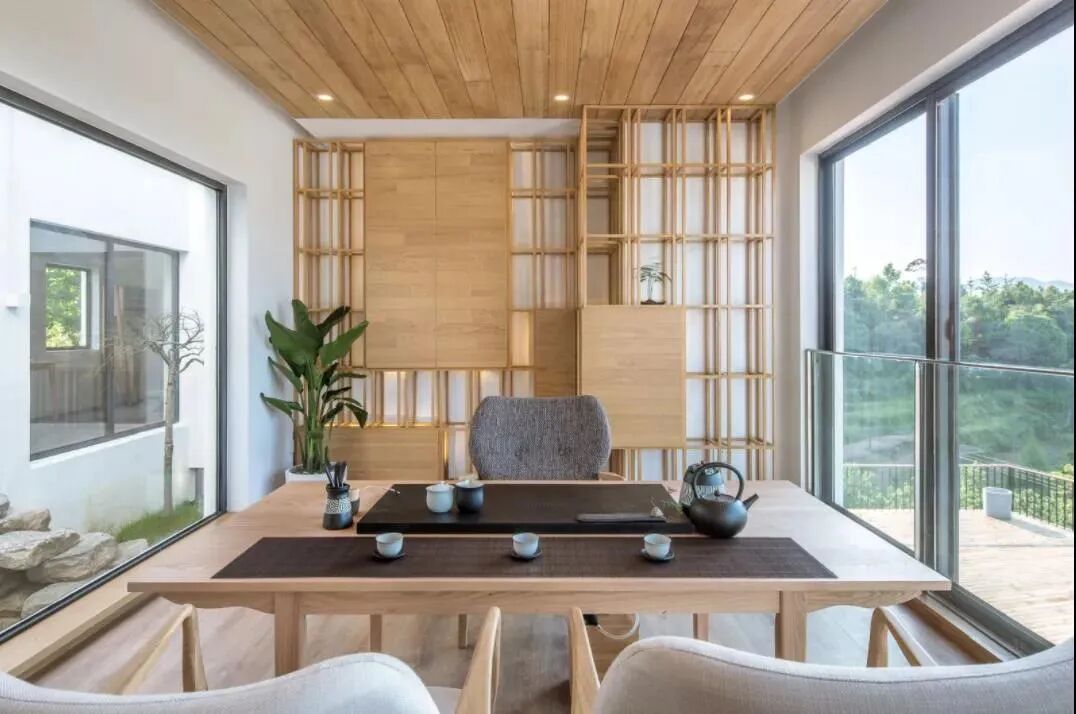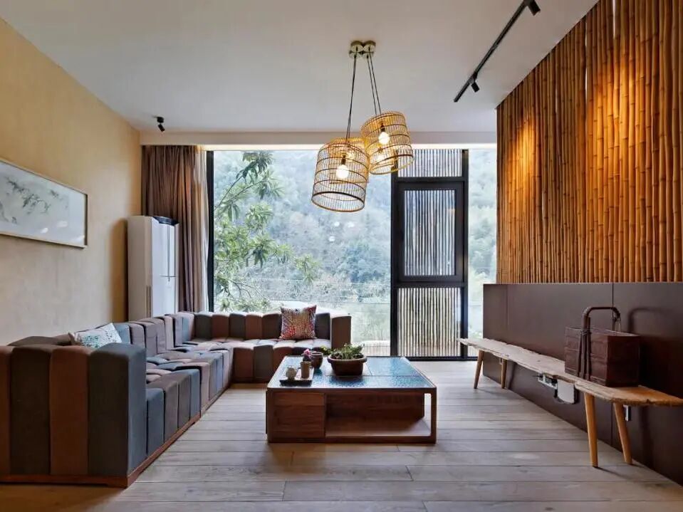 坐落于桐庐富春江畔的青龙坞山谷,群山合围,面朝小溪,茂林修竹,天然就是一幅山水画卷。因此,建筑设计和景观设计不再刻意突显自己,而是让潜庐融入自然,融入山水之中。室内设计也不再刻意追求风格,而是从居住体验和人文活动出发,只想给客人一个舒服的空间。侯正光设计的多少系列家居在这个空间里安适泰然,自然、当代,看似朴素的空间内,却给人舒适的质感。