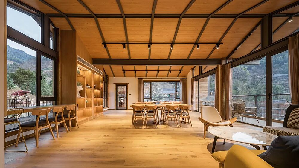 松阳原舍揽树山房建筑面积2000㎡。设计师充分借用当地的材料,环境,周边所能利用的所有元素。设计中心从空间的装饰设计转移到人的情感体验上,希望打造一个当代文人心中的理想国度。