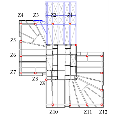 在高端写字楼项目的设计中,办公空间的舒适度至关重要。本项目低、中、高三个悬挑区域的跨度较大,我们针对塔楼悬挑区的楼板动力特性和舒适度进行了验算检查。