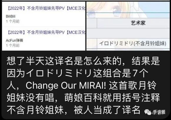 不过再怎么说,就像手谈姬前面吐槽过的,但凡你会一丁点日语,都不会把イロドリミドリ搞错成不含月铃姐妹,对于最早认错的那个汉化组来说,就更是尴了个尬,醒醒,你可是汉化组啊!