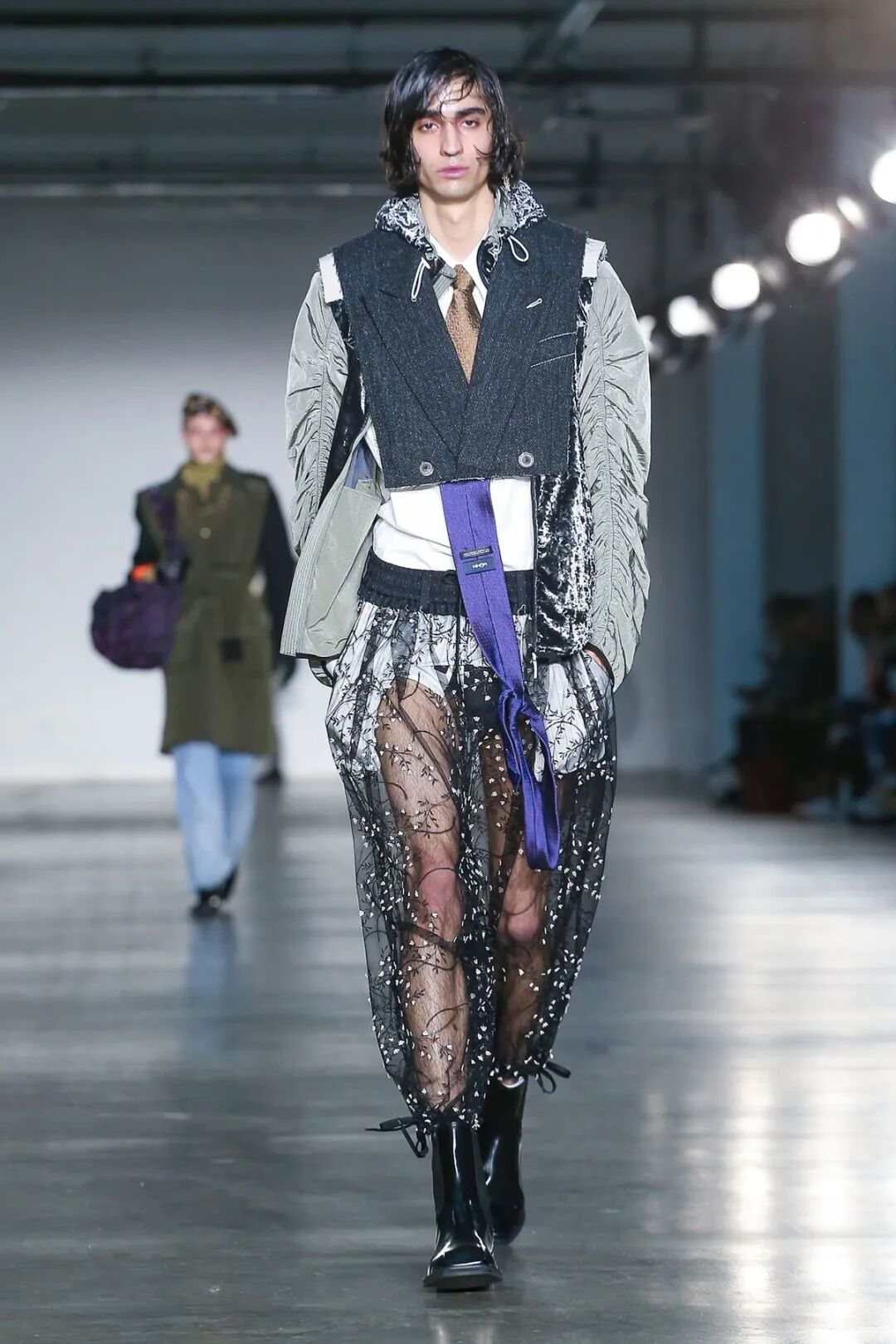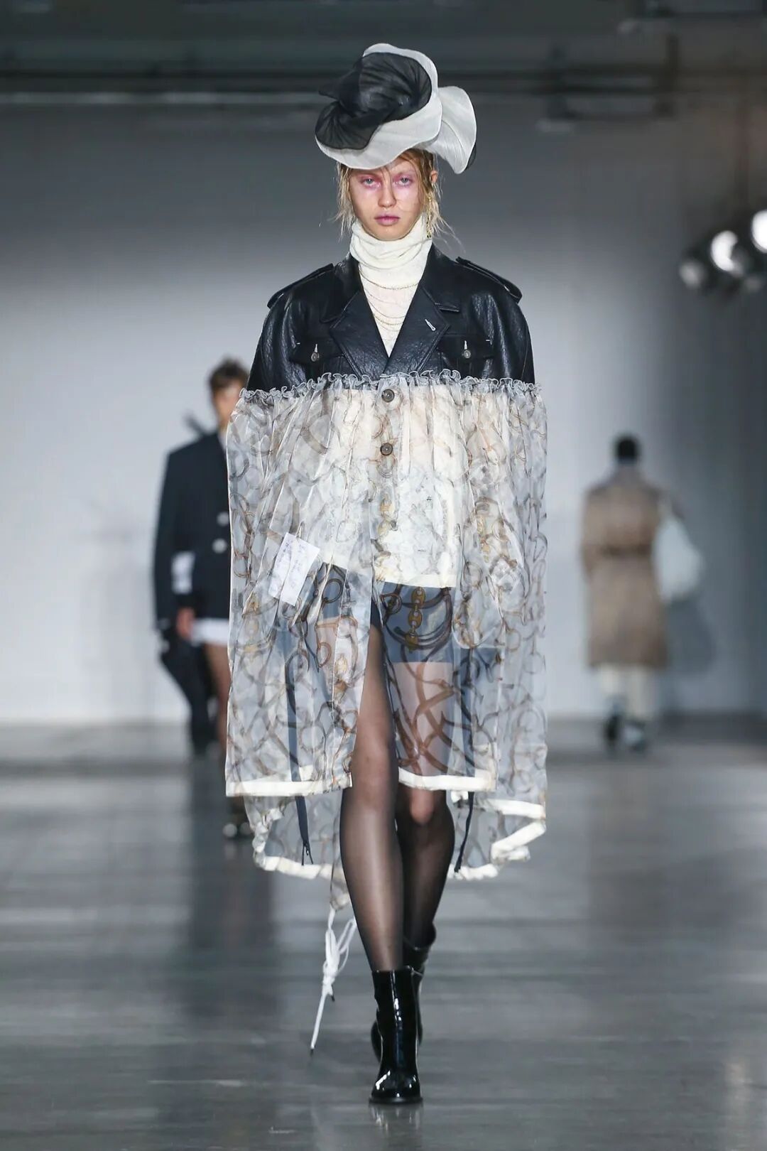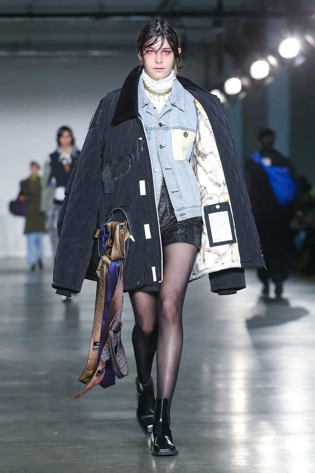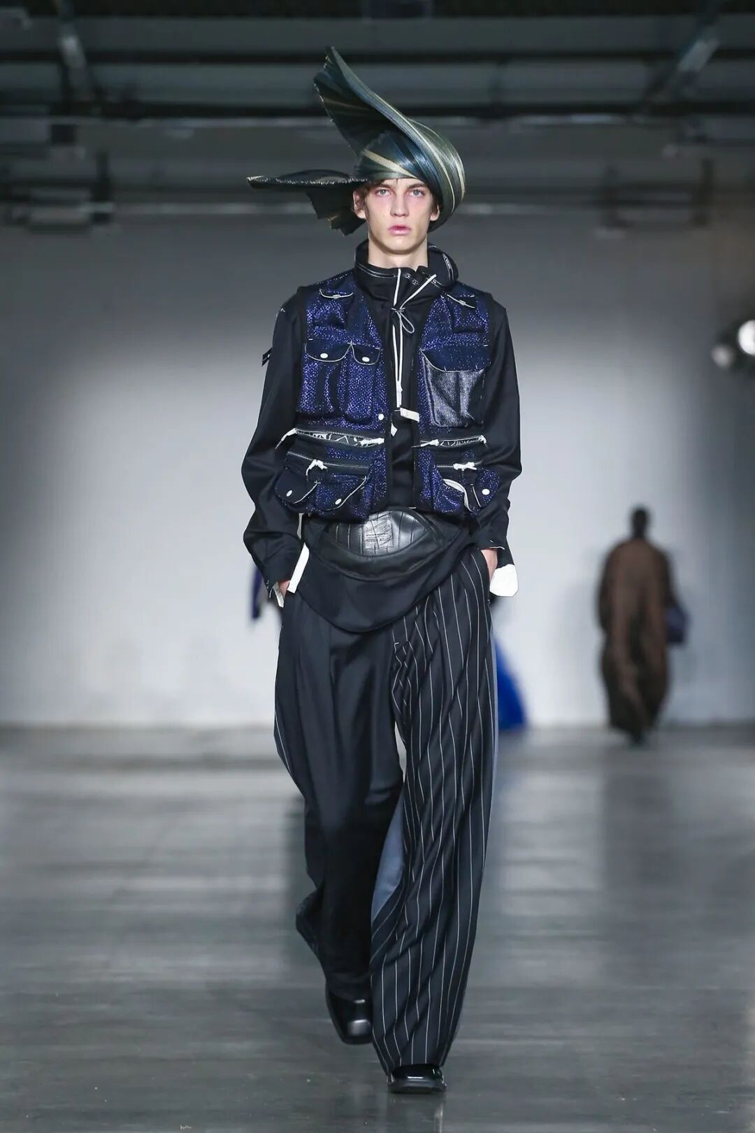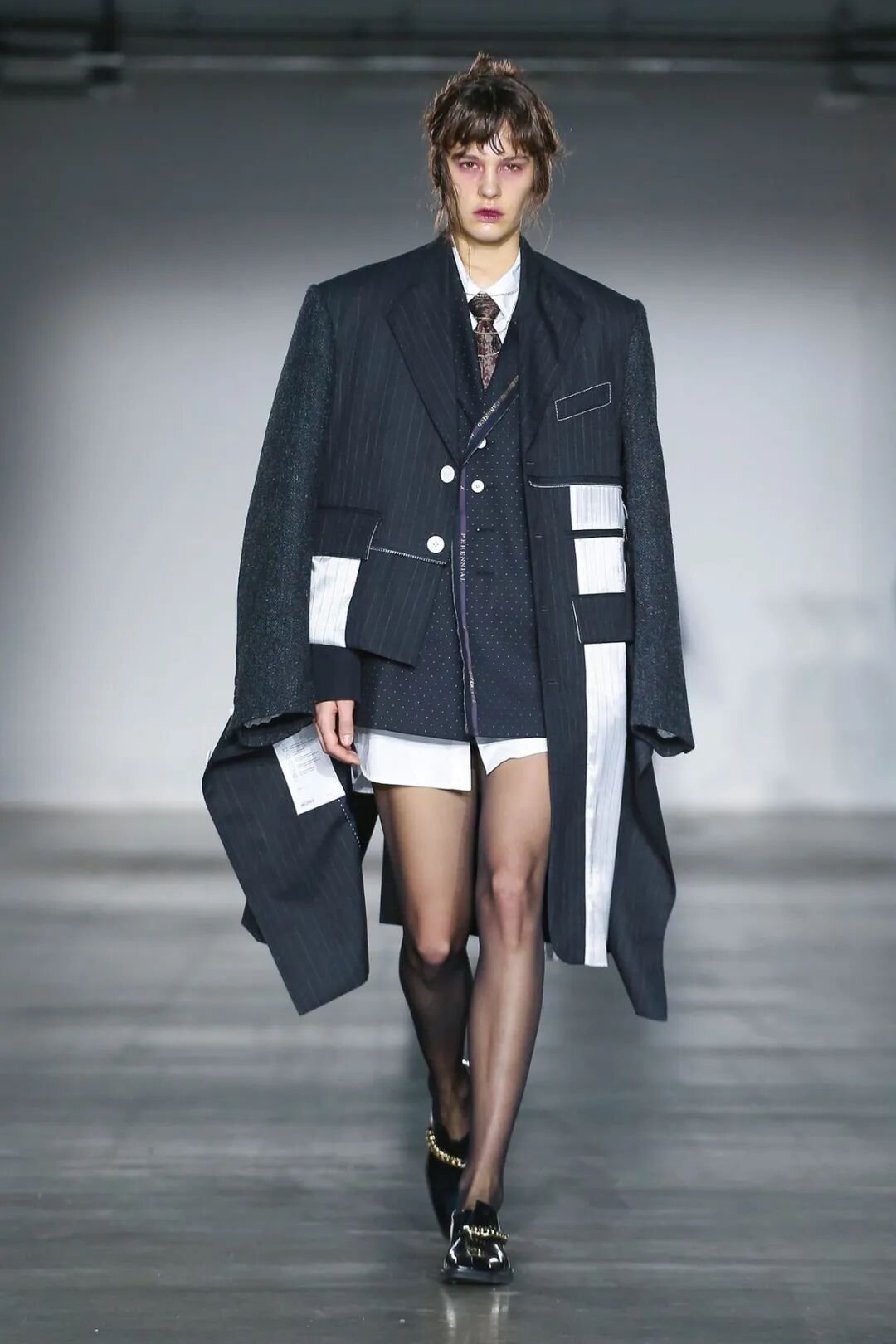 Hyun-min Han 采用了传统韩国面料和印花,辅以拼接薄纱,抽绳等工艺,并把焦点放置于裁剪的比例上。