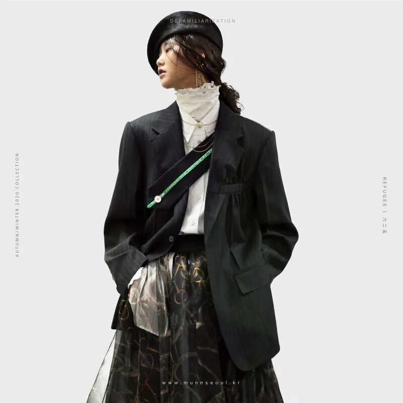 “Luxurious Defamiliarization奢华的陌生化”。Münn 如此定义自己的风格特征,以传统服装文化为基底,MÜNN奉行将一个经典款式坚持不懈地通过创意性的方法开创新的设计细节及模式。