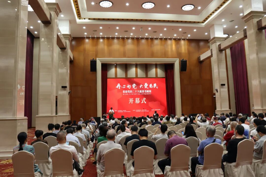 9月12日上午,正逢中秋假期,天朗气清,由浙江省委宣传部、浙江省民政厅、浙江省文化和旅游厅和浙江省文学艺术界联合会指导,浙江省慈善联合总会、浙江省书协、浙江省美协和浙江省文化会堂联合主办,浙江省慈善文化研究院承办的“丹心向党大爱为民——喜迎党的二十大慈善书画展”在浙江展览馆开幕。