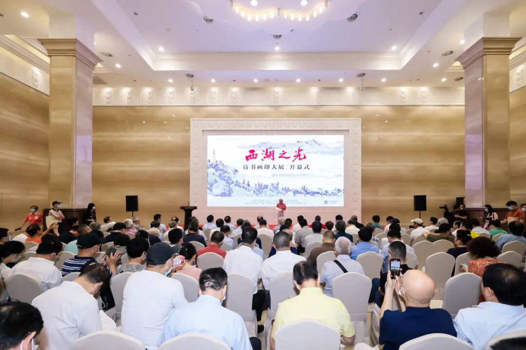 9月1日,为迎接党的二十大胜利召开和明年第十九届杭州亚运会的成功举办,为更好地宣传西湖、宣传杭州和浙江,“西湖之光——诗书画印大展”在浙江展览馆启幕。浙江省政协副主席裘东耀宣布展览开幕,浙江省政协原副主席、本次展览组委会主任、浙江省政协诗书画之友社理事长孙文友致辞,展览组委会副主任、浙江西湖书画院院长杜高杰代表艺术家致辞。开幕式由组委会副主任、秘书长王水法主持。