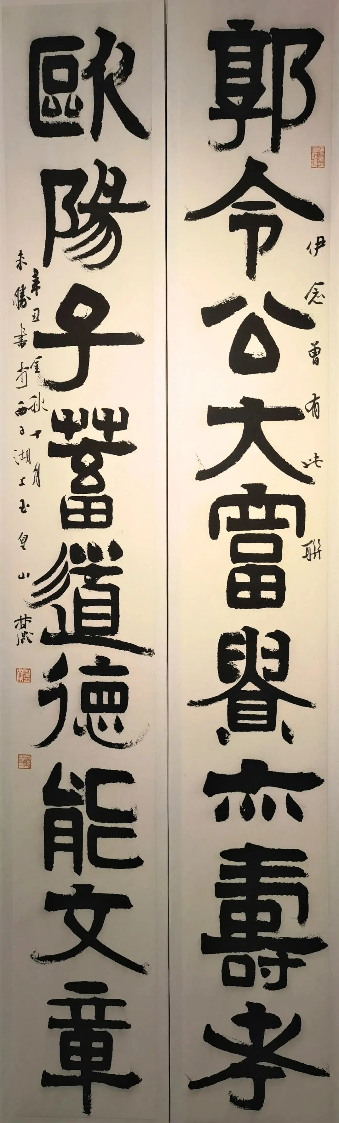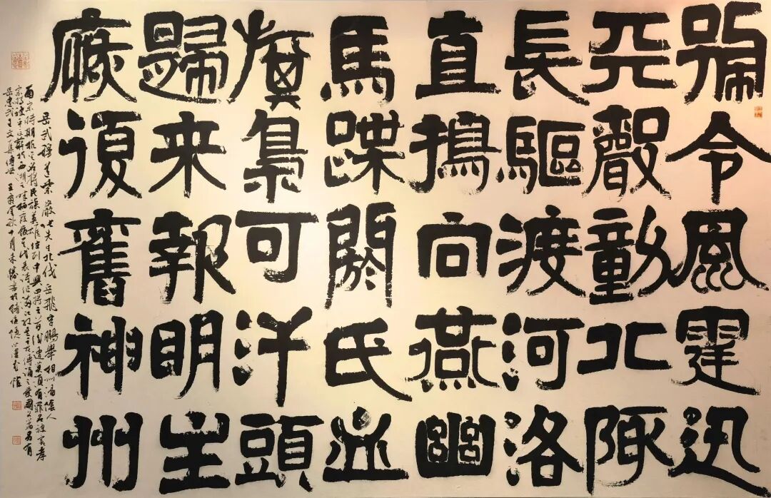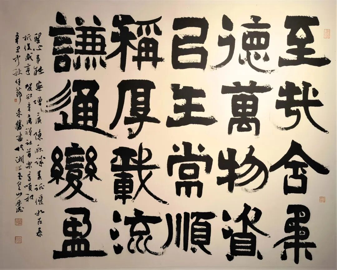 中国美院美术学博士、杭州大学美术学院副教授何来胜与中国书协理事、浙江省书协驻会副主席兼秘书长何涤非同是绍兴老乡,区别是一个是绍兴主城区的,一个是乡下诸暨的,而现在二何都落户杭州,是新杭州人的省城书法名家。二何相差一岁,却跨了两个年代,一个属鸡上世纪60年代的,一个属狗上世纪70年代的;鸡是德禽,狗是义畜。二何为何要搞书法联展不清楚,清楚的是一个主打隶书,一个主打行草。
