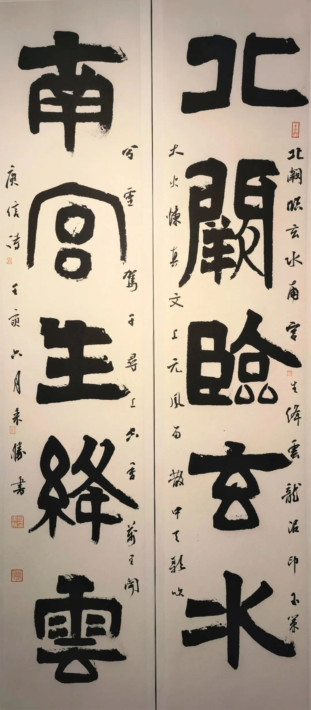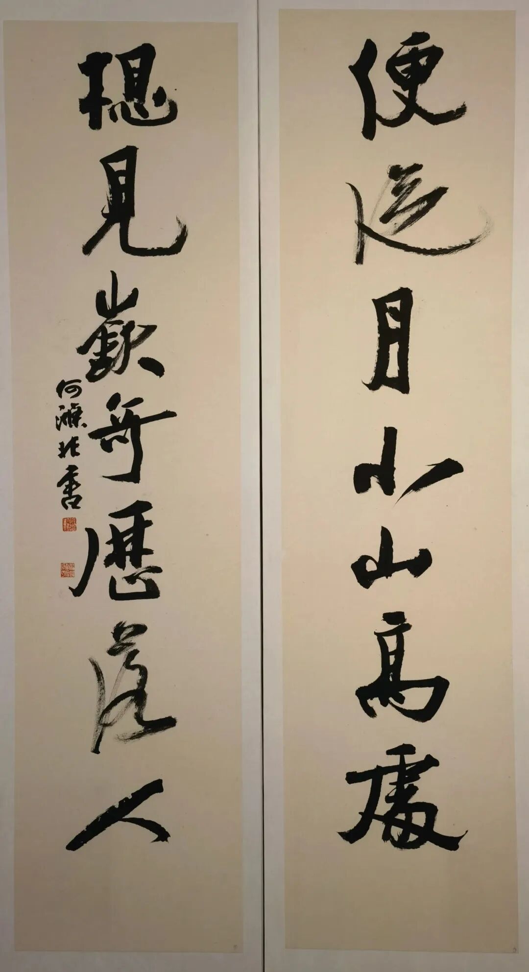 为了这次书法联展,他们各自由浙江人民美术出版社出版了作品集,总序是中国文联书法艺术中心原主任刘恒撰写。何来胜的分序由中国艺术研究院博导陈忠康友情执笔,其中有句:“重拙厚涩、古朴雅致的书风成为来胜多年来的主导意志。在这个意志下,他广泛吸取营养,频频修正风格,找到属于自己的形式语言。于是,从古帖到前贤、时彦俱可为之所用,慢慢形成了如今的样貌。”何涤非的分序则由浙江省书协副主席胡小罕旧稿新补,其中一节:“尤其是涤非兄工作上、事业上的压力更重了,但这并没有妨碍他艺术上的执着精进, 尤其可贵的是,他在保留原有严整楷法骨骼的基础上,朝着写意的方向又作了很大的开拓。过程中他十分谨慎地处理好用笔中的精熟与生拙、字势中的排闼与迎揖之间的微妙关系。”