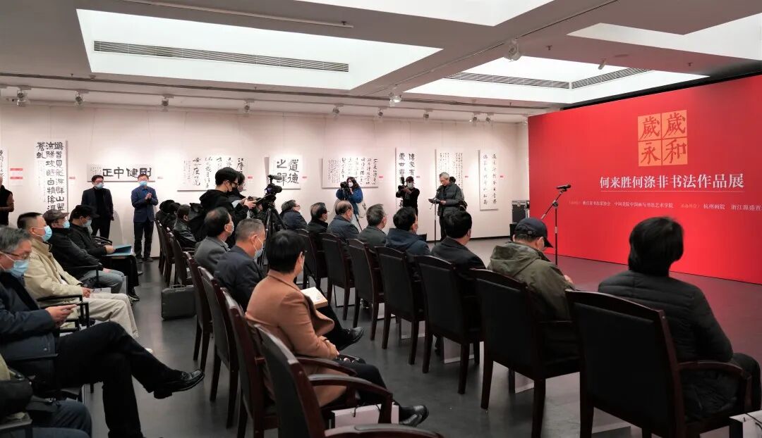 12月15日,浙江省书协、中国美院中国画与书法艺术学院主办的“岁岁永和——何来胜何涤非书法作品展”在杭州画院美术馆拉开帷幕。许多书法界人士和相关部门领导出席。