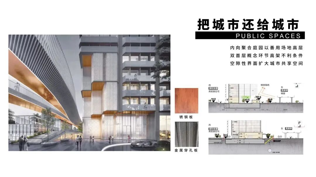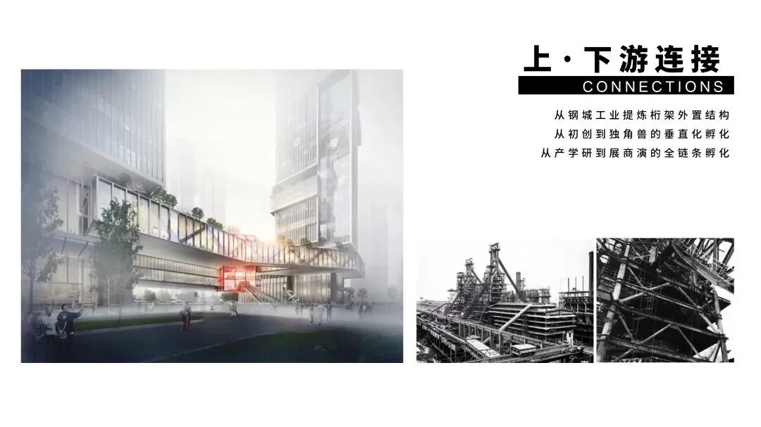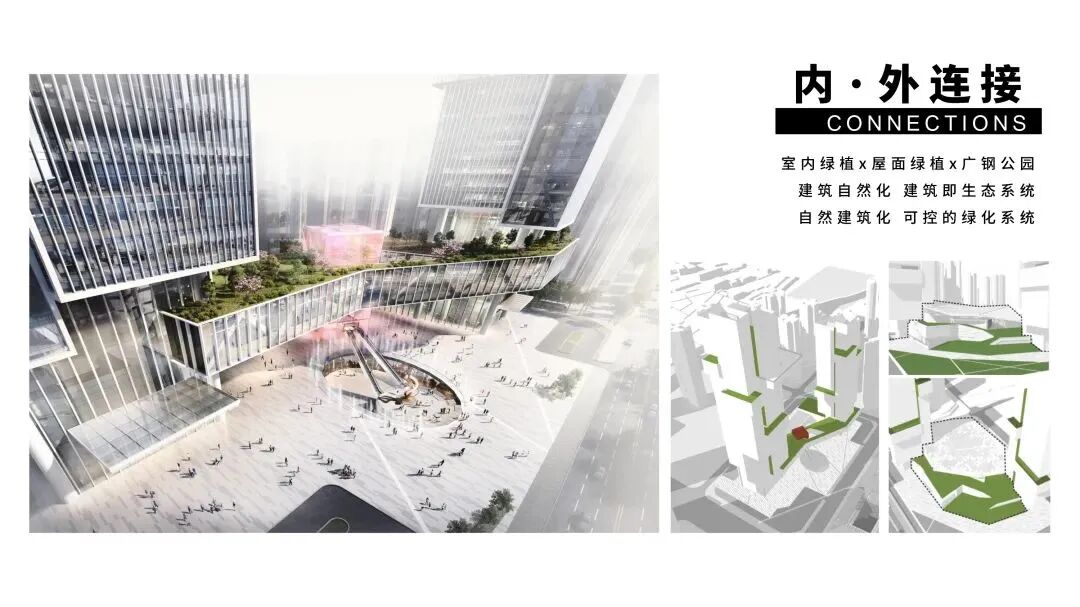 这是最近的一个可落实的项目——钢城·峰峦,是在广钢新城3号地的两栋塔楼。我们尝试把此前的概念和经验都融入此项目中,分别是工业遗址、复合城市、空间共享、绿色生态四个概念。