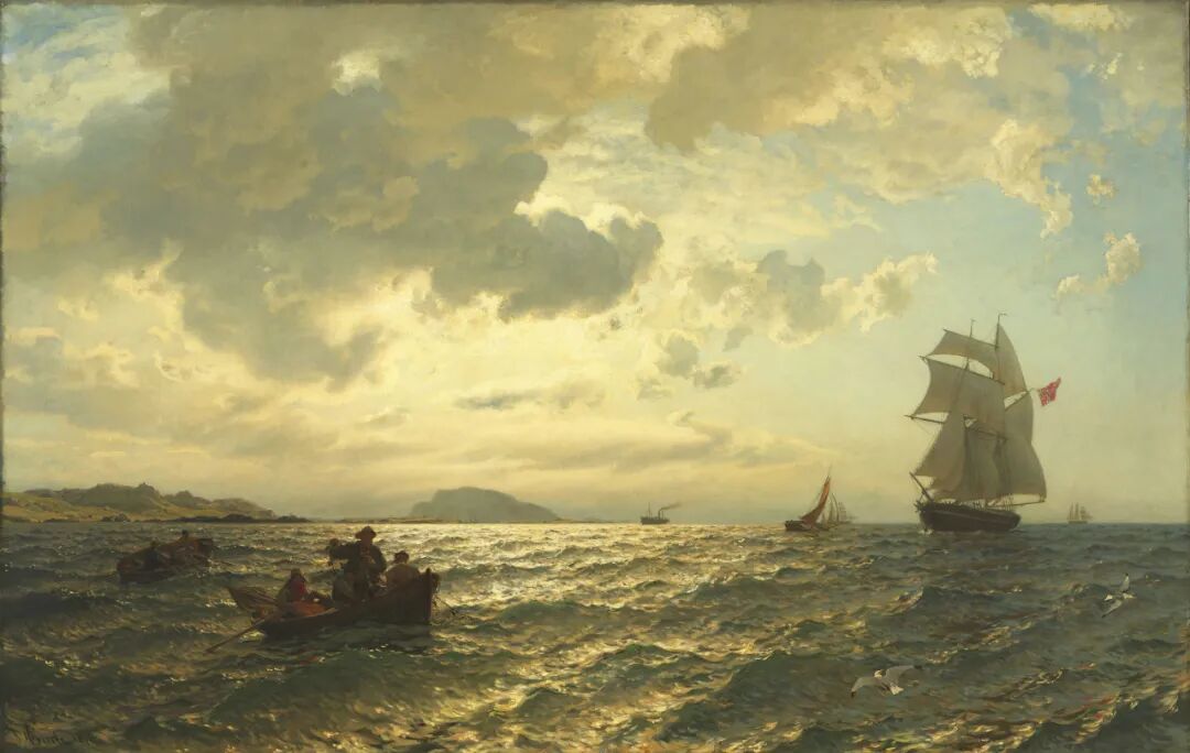 1876年--在费城举行的美国百年委员会国际展览会上,挪威海岸和平静的清风获得奖章。