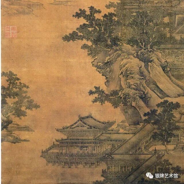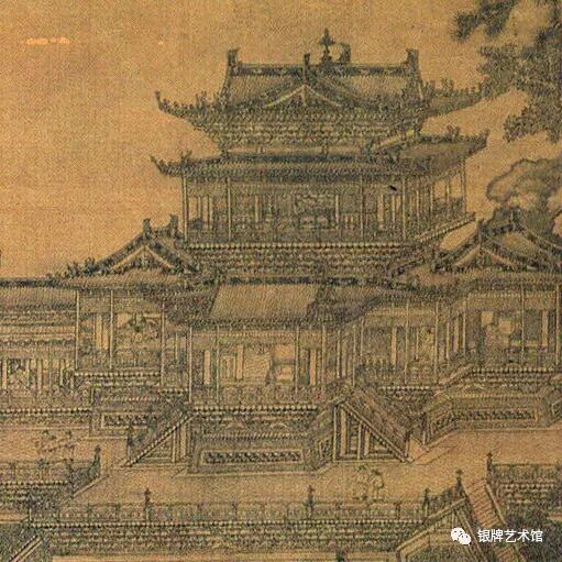 采用鸟瞰式构图,把宫苑内外景致描绘尽致毕现。