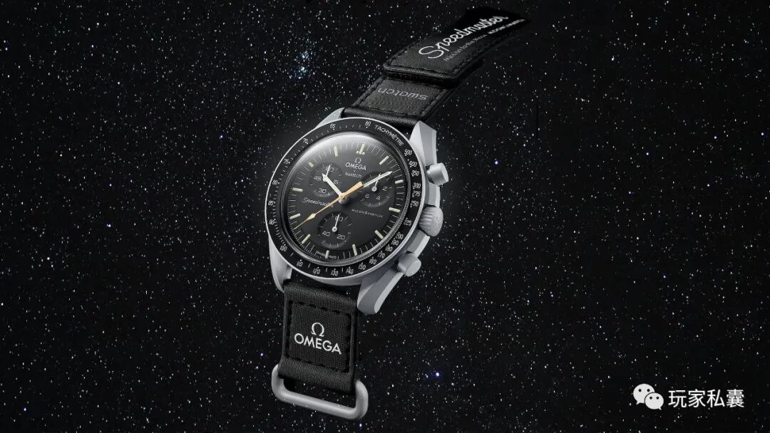 既然都有月球车了,完成月球任务的计时腕表应该来一块吧,它不像前面那些稀少或者昂贵的装备,它甚至都不算特立独行,如果把Mission to Moonshine Gold这块表放在去年的11块联名MoonWatch表弟里,你可能都分辨不出来。
