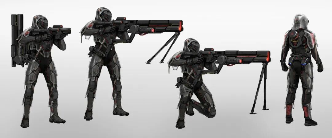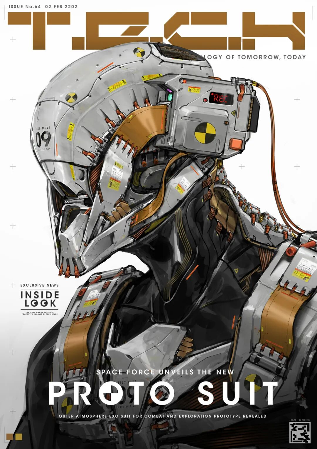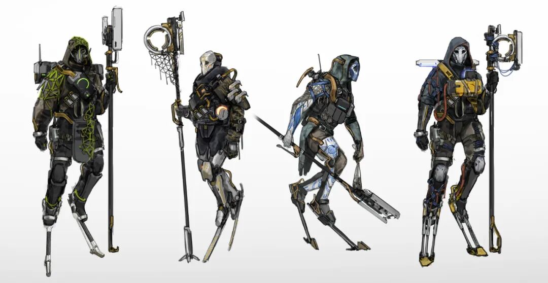 Johnson非常擅长机械类的设计,他笔下的未来战警酷炫十足,而女性角色的设计写实且细腻,配搭上机械元素,柔美又个性。