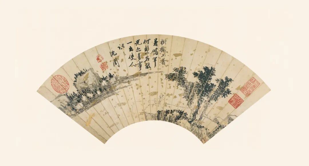 便于携带、把玩的折扇,自然也成为当时风雅之人相互馈赠的随身物品。像沈周这一类的折扇扇面画,大多数都是当作赠人的社交礼物。那么,沈周的这件扇面山水究竟是要赠与何人?大伙不妨猜猜~
