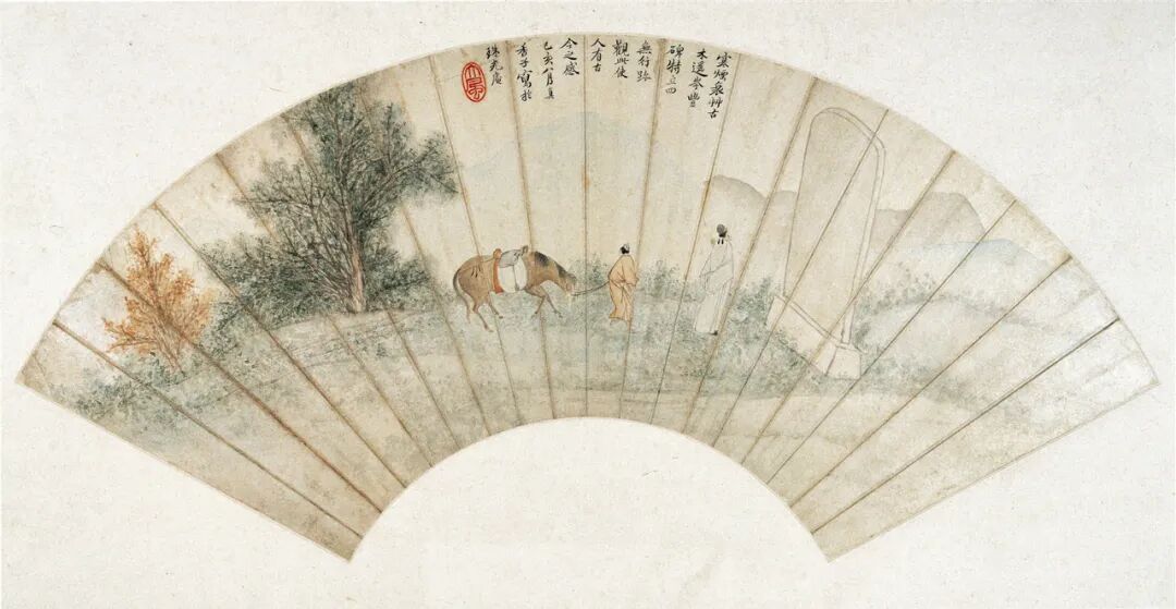 清 张风《读碑图扇页》