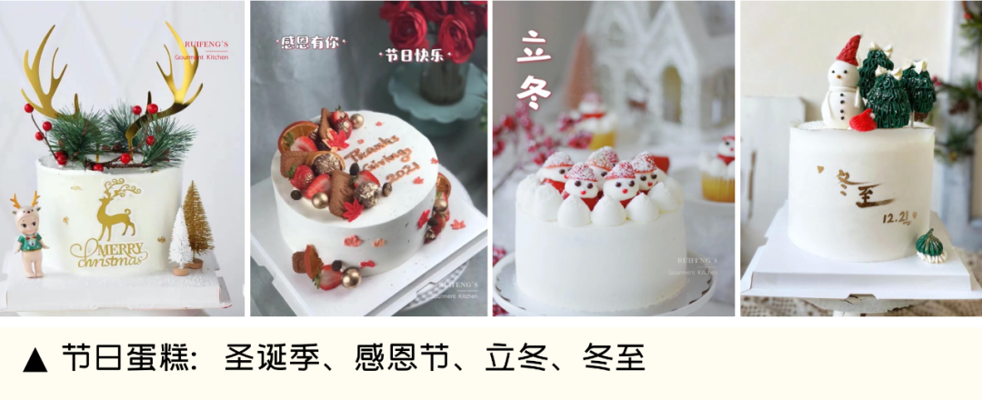 接下来就是寻找设计重点,包含整体造型,色彩搭配,装饰元素,线条律动,肌理纹路,比例角度,协调搭配,和谐美感,细节亮点等。身为一名烘焙师,蛋糕上的每一个元素都要经过深思熟虑被设计过的,就像我们做界面设计一样,页面中每一个元素都不是随便安放偶然出现的。