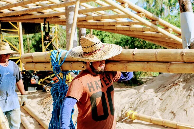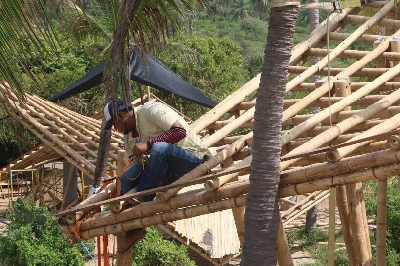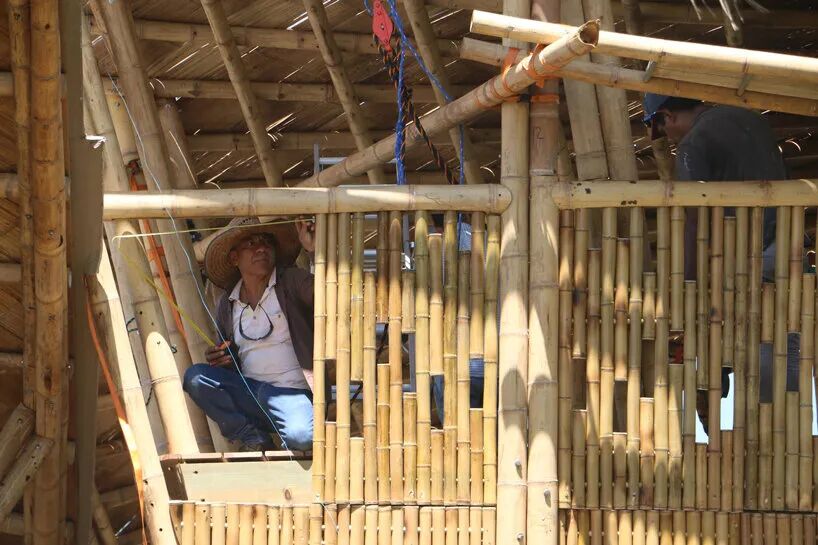 这些结构主要由当地的竹子建造,竹子是世界上增长最快的可再生建筑材料之一。