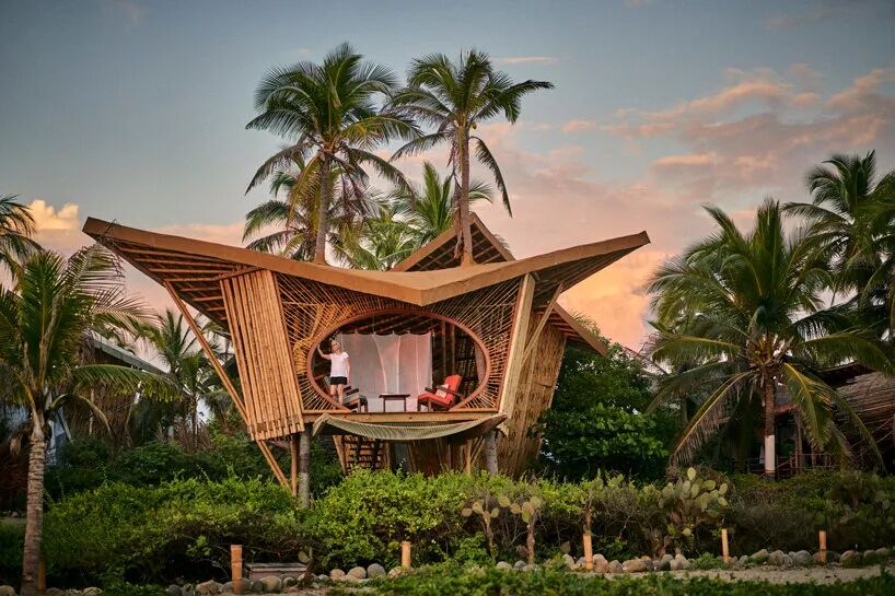 atelier nomadic adds 6 bamboo treehouses to an off-grid resort in mexico.