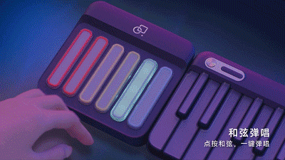 要知道情歌和流行乐,大多是三五和弦重复排列,需要同时按住好几个琴键...而有了“和弦胶囊”用一根手指就能边弹边唱,只需事先选好要用到的和弦,手指一点,和弦的声音便会流淌而出~
