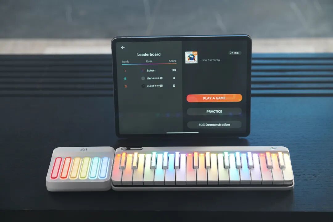 而且在学习过程中,通过酷炫的亮灯指引,巧妙实现了音乐中的“所见即所得”!