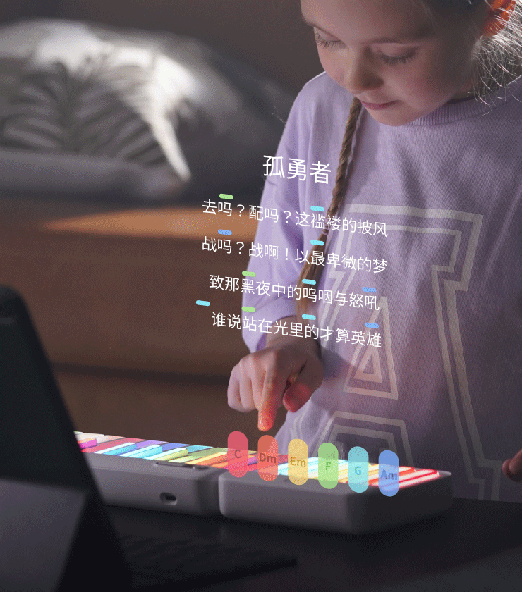硬件实时点亮,同步弹奏位置,软件判定对错,弹对才会继续,依靠“光”的指引,寻找到正确的位置,你会发现学音乐真的不难!