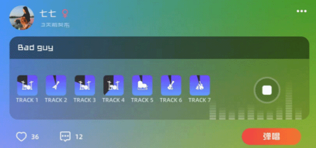 Ps:这个模块的交互性做得超级赞!你甚至还可以进入其他用户的页面,了解他们是如何创作的、点击“弹唱”,进入到对方制作的曲子里,跟着提示边弹边唱!
