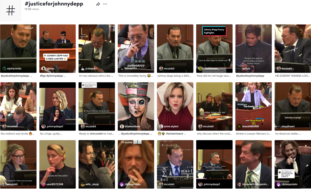 双方支持率可以通过一个数据对比展现:现在Tik Tok上话题#justiceforjohnnydepp(给约翰尼·德普一个公道)的观看量已突破190亿,话题#justiceforamberheard(给艾梅伯·希尔德一个公道)的观看量突破7600万。