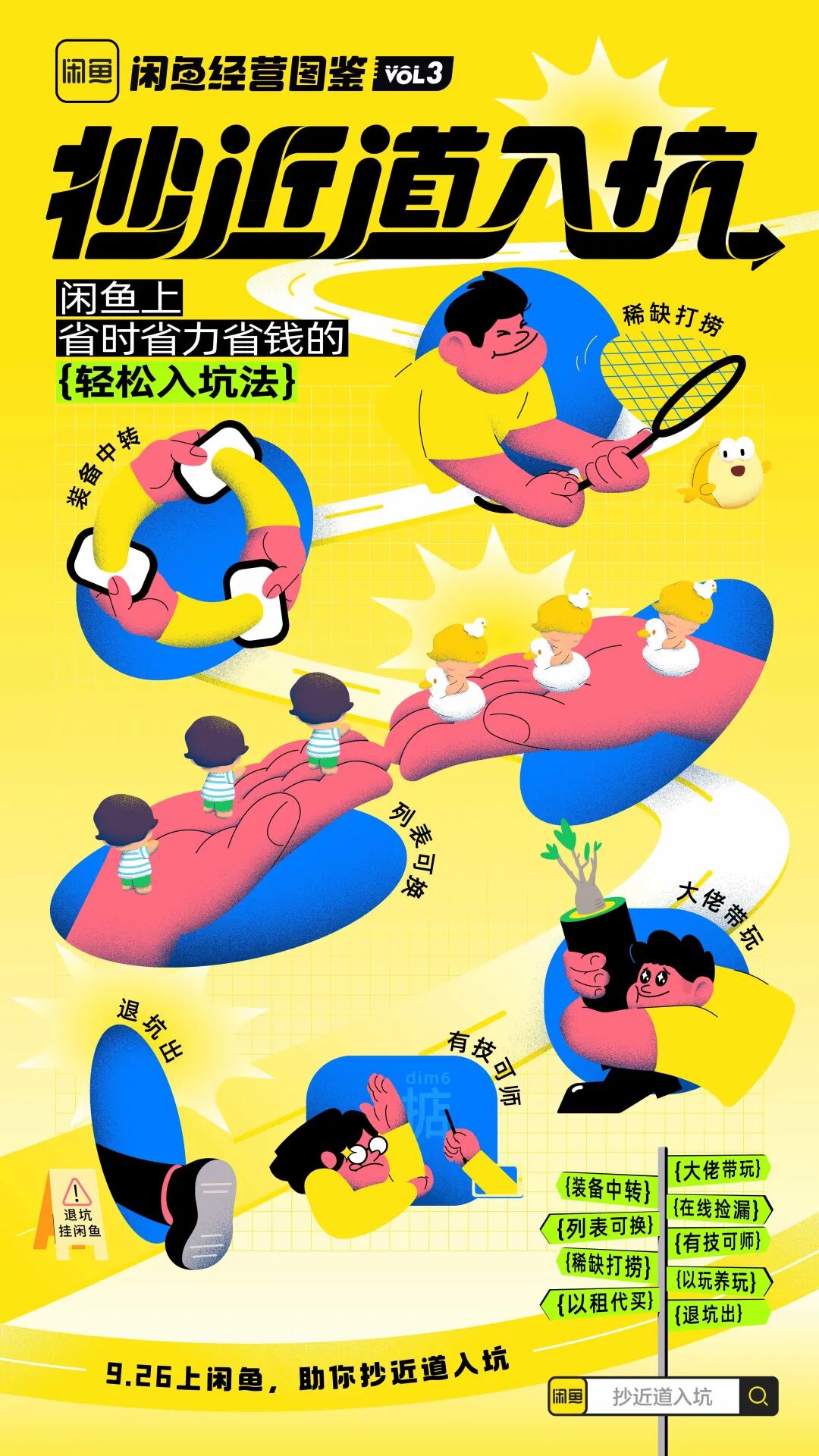 继闲鱼经营图鉴 Vol.1「野性收集」和 Vol.2「迷之改造」后,闲鱼开启第三期「抄近道入坑」,总结年轻人们在平台上的「9 大抄近道入坑行为」,希望为年轻人搭建「更轻松」的入坑通道,和年轻人一起省时、省力、省钱地「抄近道入坑」。