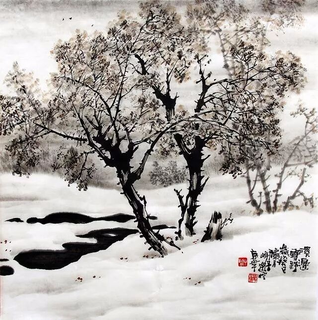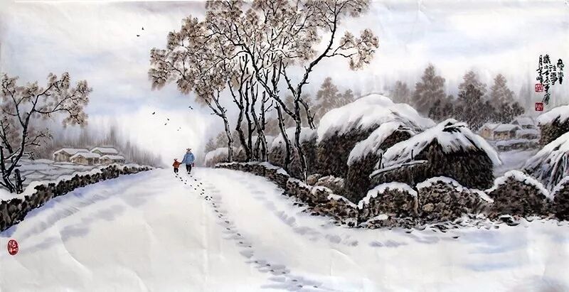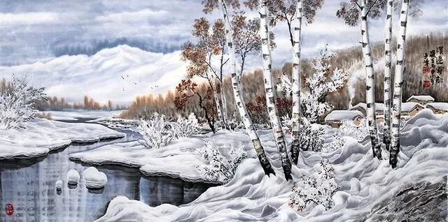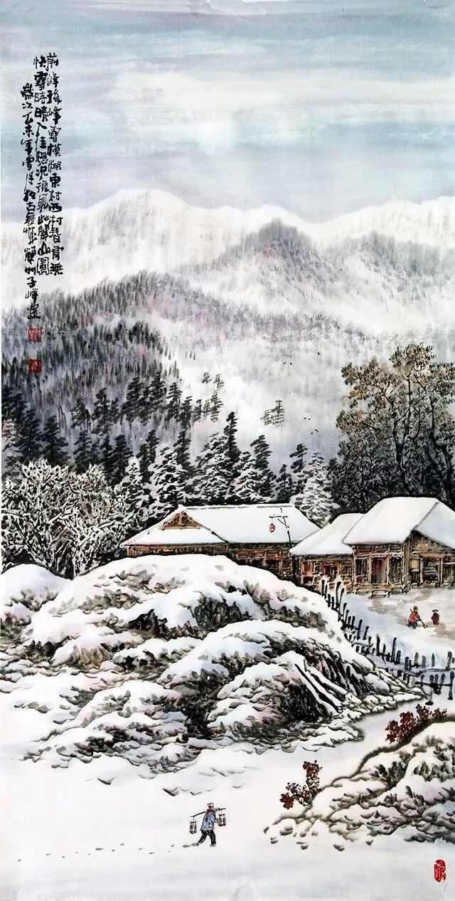 这是甘肃中青年画家刘丁瑞(字,子峰)笔下的一组冰雪山水,送给大家欣赏!