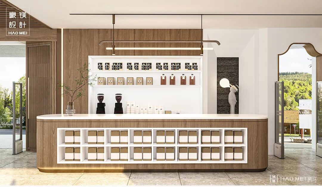 收银台融入咖啡饮料品类,恰到好处的自然阳光与暖黄灯光,衬托出格调感与温馨氛围,舒适的环境与咖啡爱好者的消费体验相得益彰。