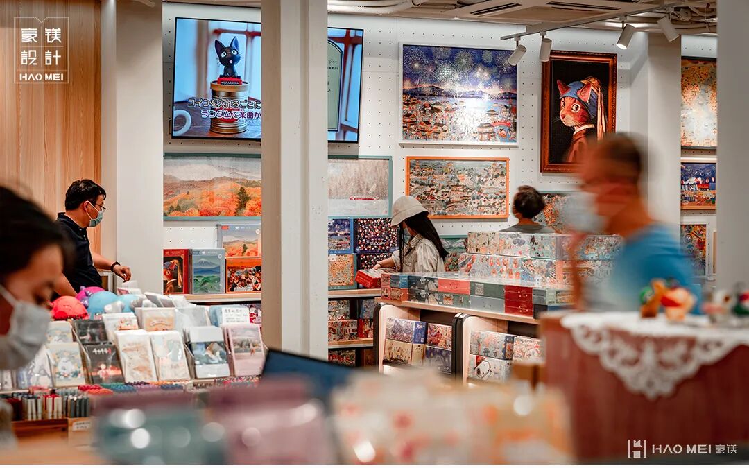 猫的天空之城概念书店,豪镁通过精美的展架制作,建立内外、上下、人与空间、物理与精神的奇妙连接,营造空间仪式感。