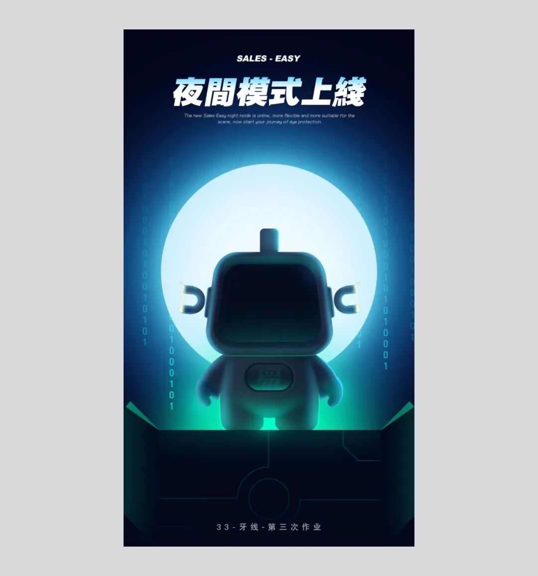 哇,一下好太多了,她自己绘制了一个科技感,霓虹灯的灯光在后面,并设计了标题字体。挺不错了已经。