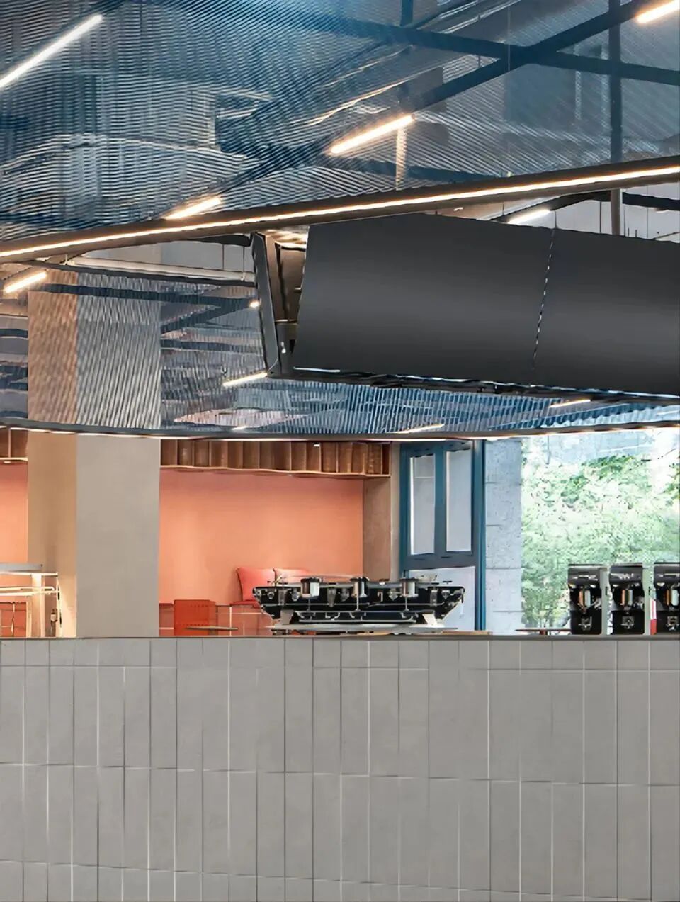 “ Architecture is a kind of social art form.”强调整体序列感,注重体块的秩序性。利用轻质金属材料的包被性打造线性光影外立面。不仅仅是静态的独立空间片段,而是连续的场域感知。