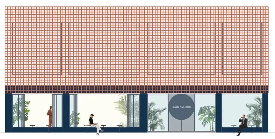 对于在地性的研究在于考量到交叉路口的原生环境。造型感和立体感强烈的金属形成遮挡效果和视觉反差,同时也增强了抗风性。