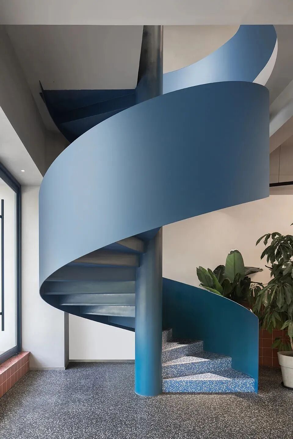 ▼以金属与大理石嵌合构成的旋转楼梯 ©YCL
