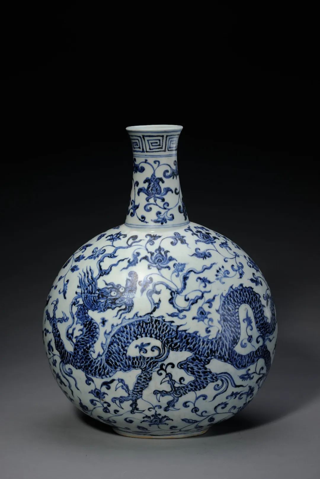 青花龙穿花纹扁壶,江西景德镇御窑,明永乐