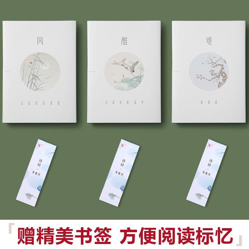 今天我们为诸君力荐一套装帧精美典雅的《诗经》(复古插图版,含风、雅、颂三册礼盒套装,并赠书签)。