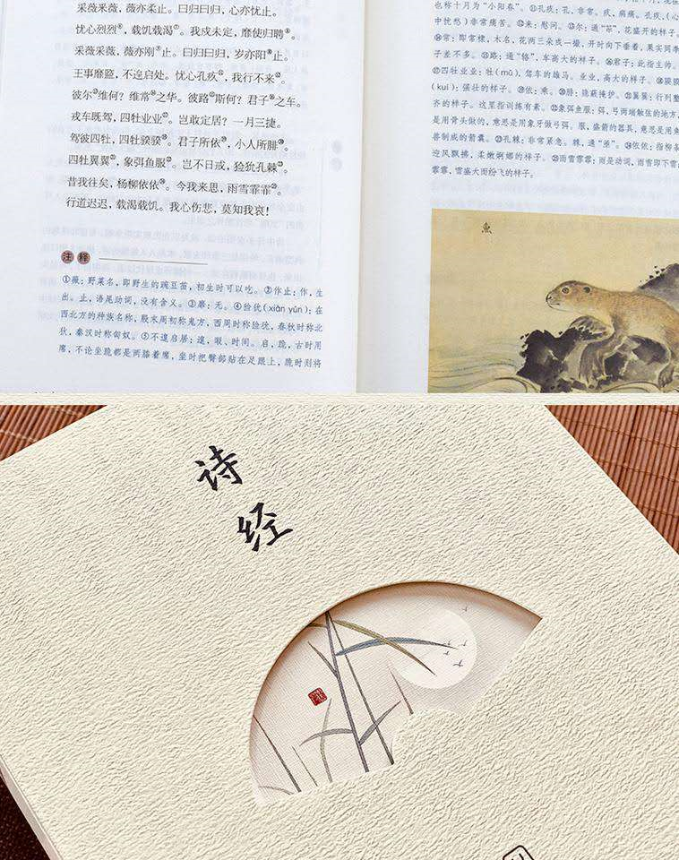 不过,市面上刊行的《诗经》,要么无名物图,要么无注音,要么无注解,装帧无亮点。