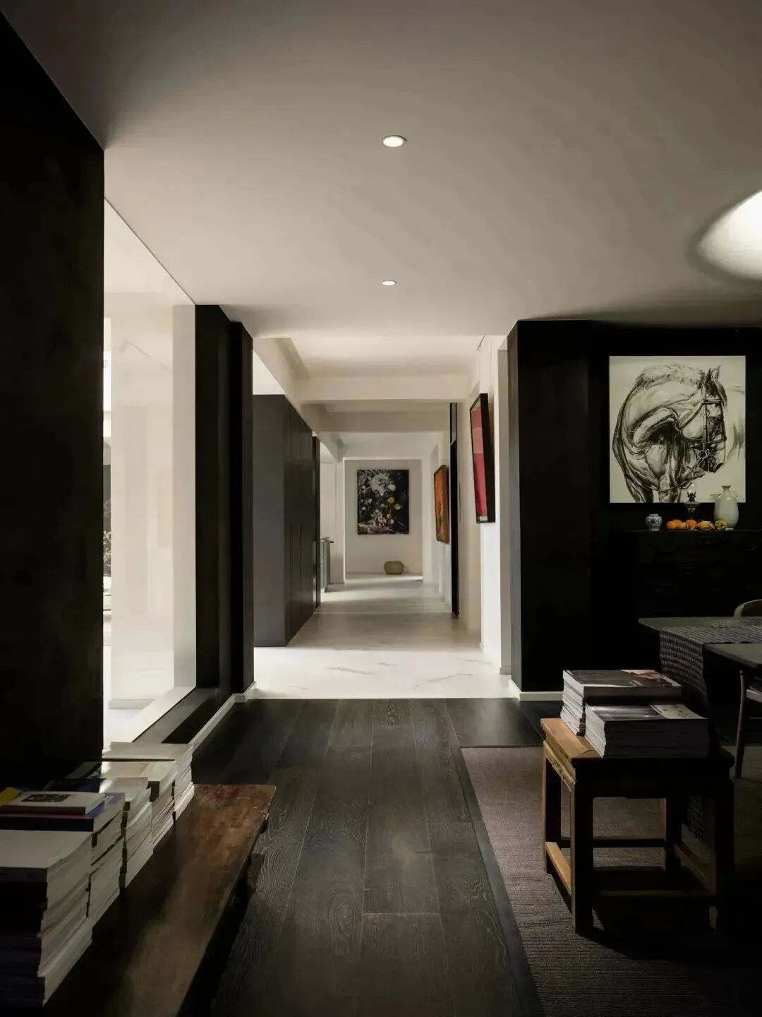 池陈平:我希望是舒适的。比如我在没有光线的地方给主人做了一个茶室,他说我很喜欢待在这个空间,虽然它没有光线,但是待在这里我很安静,呆得住,那就很舒服。他在这里能看到画廊,挑空的客厅,看到楼梯,他可以纵观全局,这对他来说有安全感,氛围又营造得非常好,这种体验感很重要。