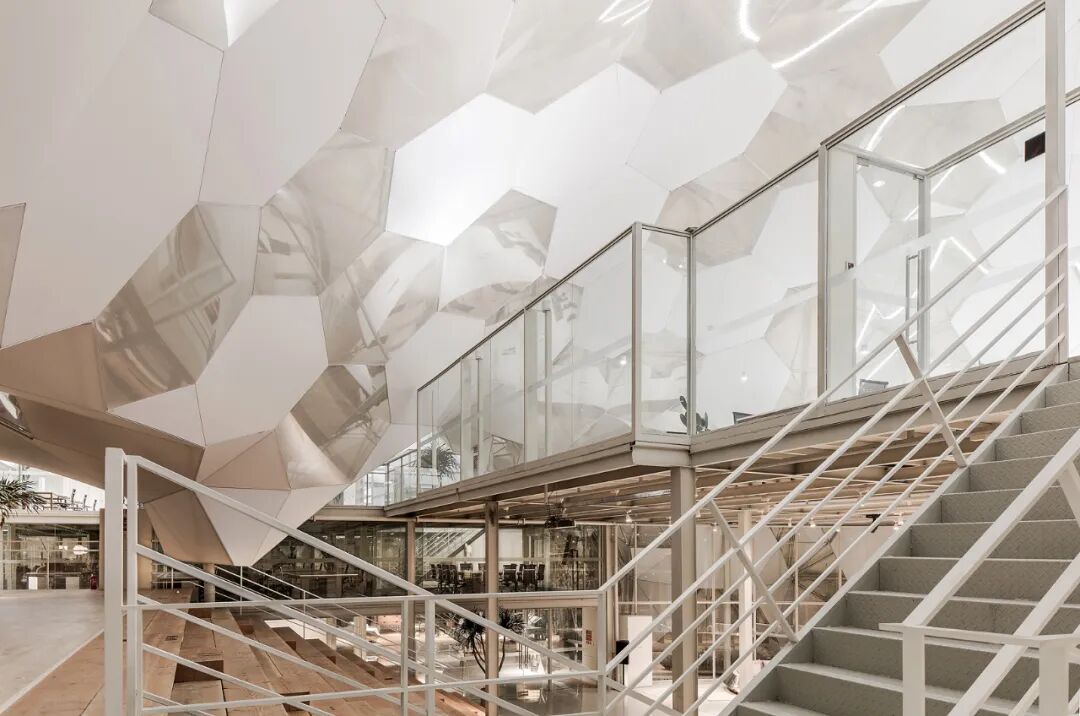 2020年,展示空间「J+生活艺术馆」,将建筑感、雕塑感与功能,剪纸化的由外而内混沌融合,作品刊登即刷屏,再度引发行业关注与热议