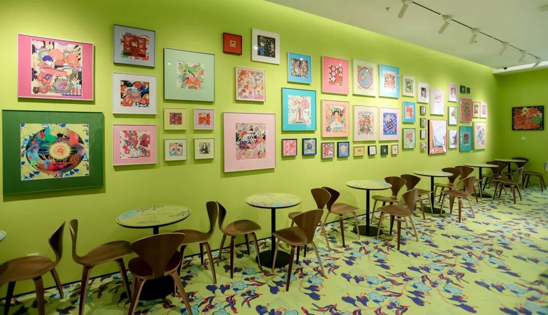 HA为本次“宇宙花花大爆炸”所设计的FAFA Cafe,以极具感官跳跃性的绿色为基底,意在呼应其所在的HADC的设计基因。同时,倘若你细细观察,将能在展墙上发现ATOMO的演变过程。这些小小的细节故事就藏在多彩版画作品的背后。